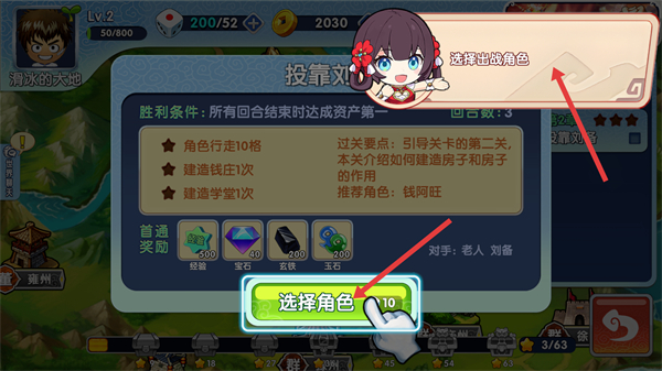 4、了解游戲背景故事后點擊開始,進入關卡和其他角色開啟三國大富翁的冒險之旅。