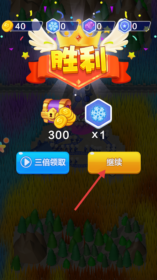 4、成功通關后會彈出勝利界面,顯示獲得的獎勵,如金幣、道具等,你可以點擊繼續就能進入下一關,繼續兵團的征戰不斷挑戰更高難度關卡。