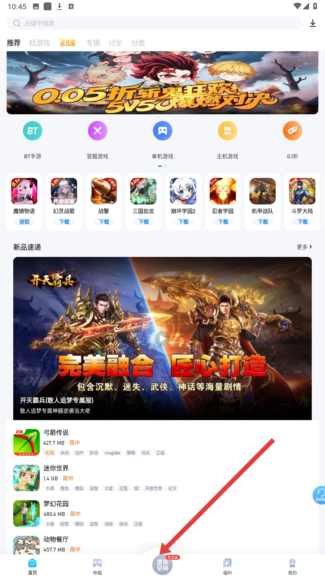 1、游戲平臺首頁,點擊虛擬空間,可進入虛擬空間頁面,查看英雄丹、重力斗毆等推薦應用。