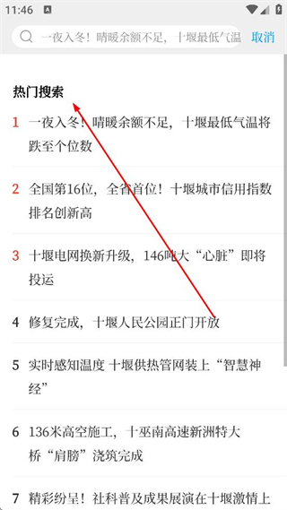 3、點擊搜索欄可查看熱門搜索內容,選擇感興趣的熱門話題,點擊進入查看詳細信息,了解本地熱點資訊。