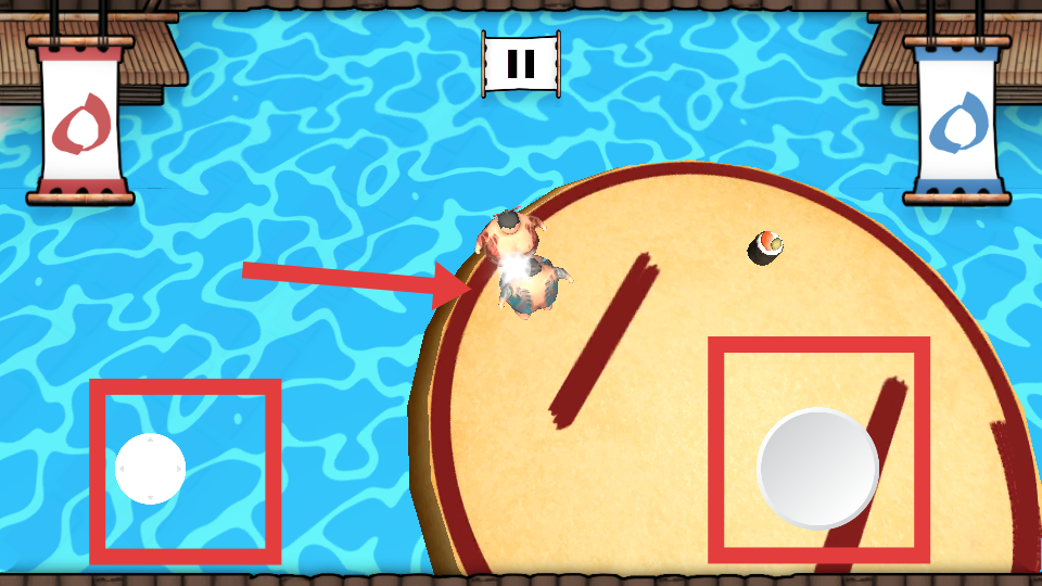 2、玩家通過操控屏幕上的虛擬按鈕,控制相撲選手移動和出招,與對手展開較量,目標是將對手推出圓形的相撲擂臺。