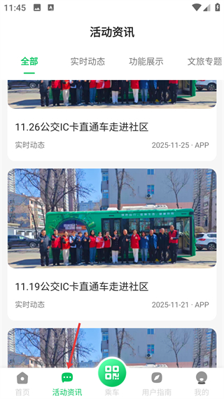 3、活動資訊頁面展示公交相關活動動態,按分類呈現資訊內容,是用戶獲取公交活動信息的專屬渠道。