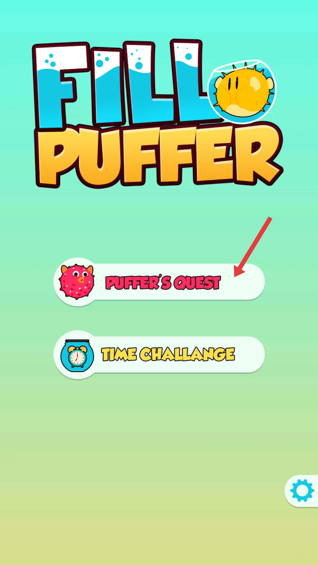 1、游戲主界面有河豚的冒險和限時挑戰兩個選項,點擊河豚的冒險,可進入河豚冒險模式,開啟游戲之旅。