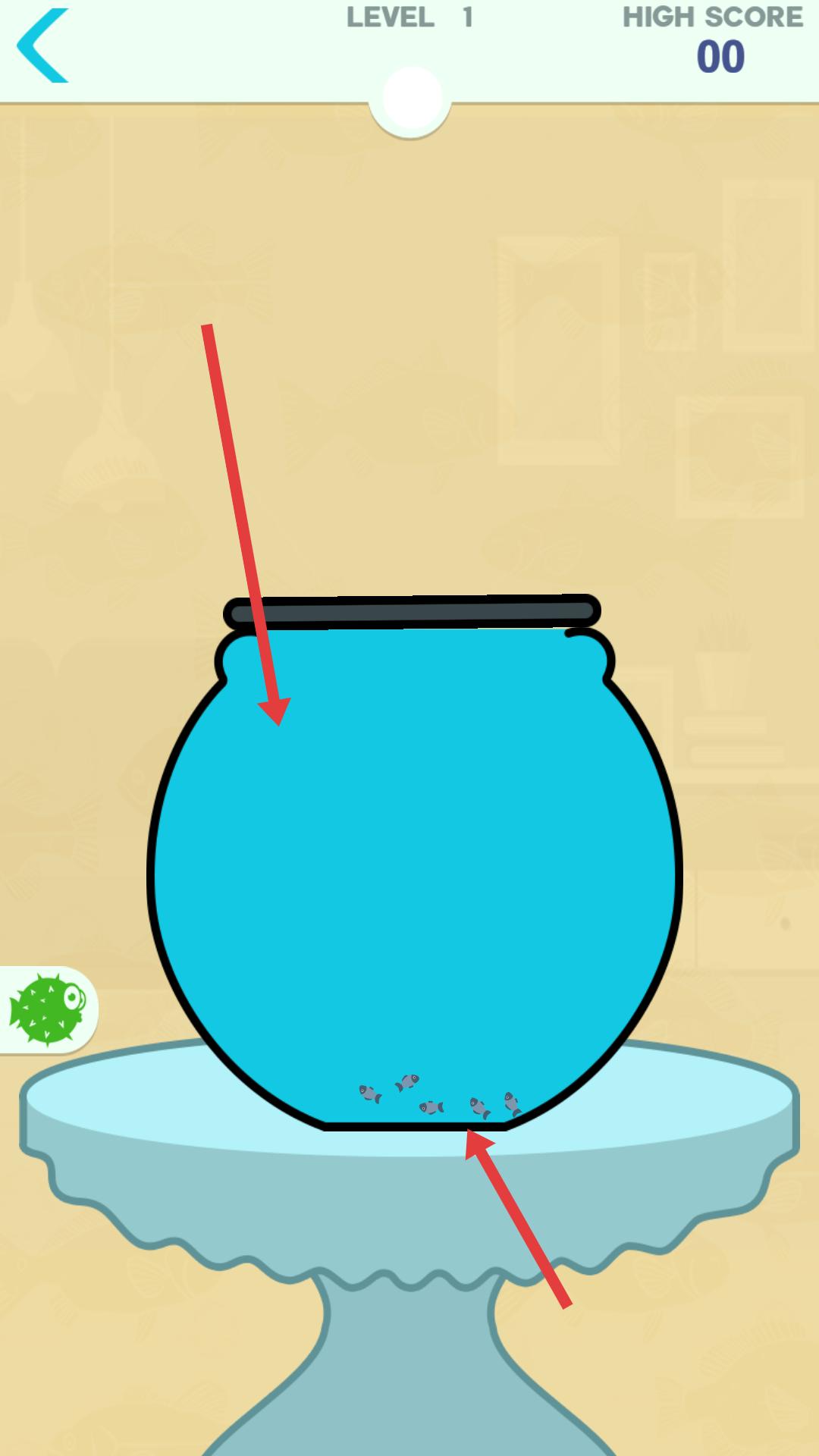 3、游戲開始后操作讓河豚在魚缸里,注意魚缸內小魚,通過合理操作,讓河豚在魚缸環境中活動,完成關卡目標。