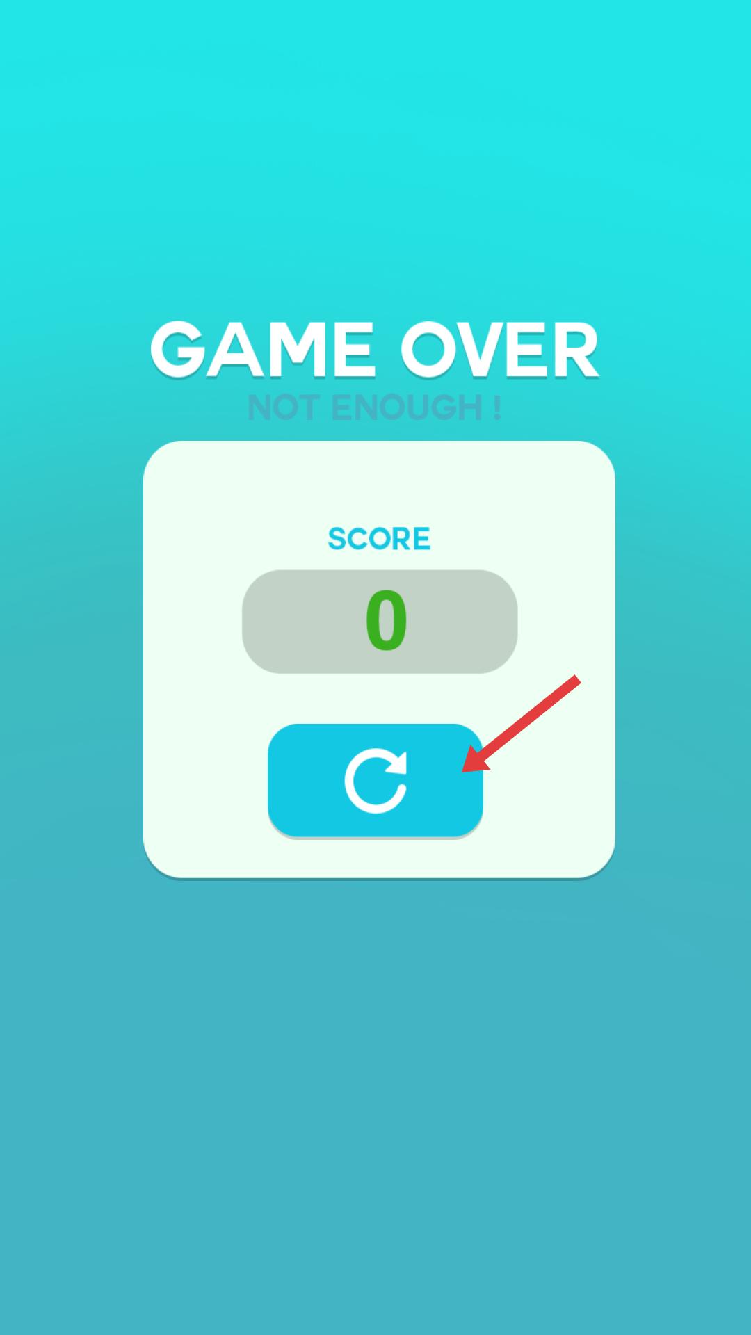 4、若游戲失敗,界面顯示游戲結束,此時點擊藍色帶循環箭頭的按鈕,可重新開始游戲,再次挑戰關卡。