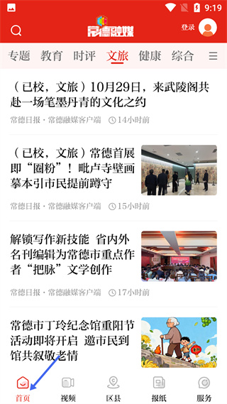 1、 首頁有專題、教育等新聞分類,呈現武陵閣文化之約、毗盧寺壁畫展等文旅新聞,提供本地資訊。