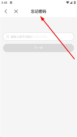 3、進入忘記密碼界面,需輸入框填寫賬號,按示例格式輸入后點擊下一步,即可進入后續的密碼重置環節,完成密碼找回操作。