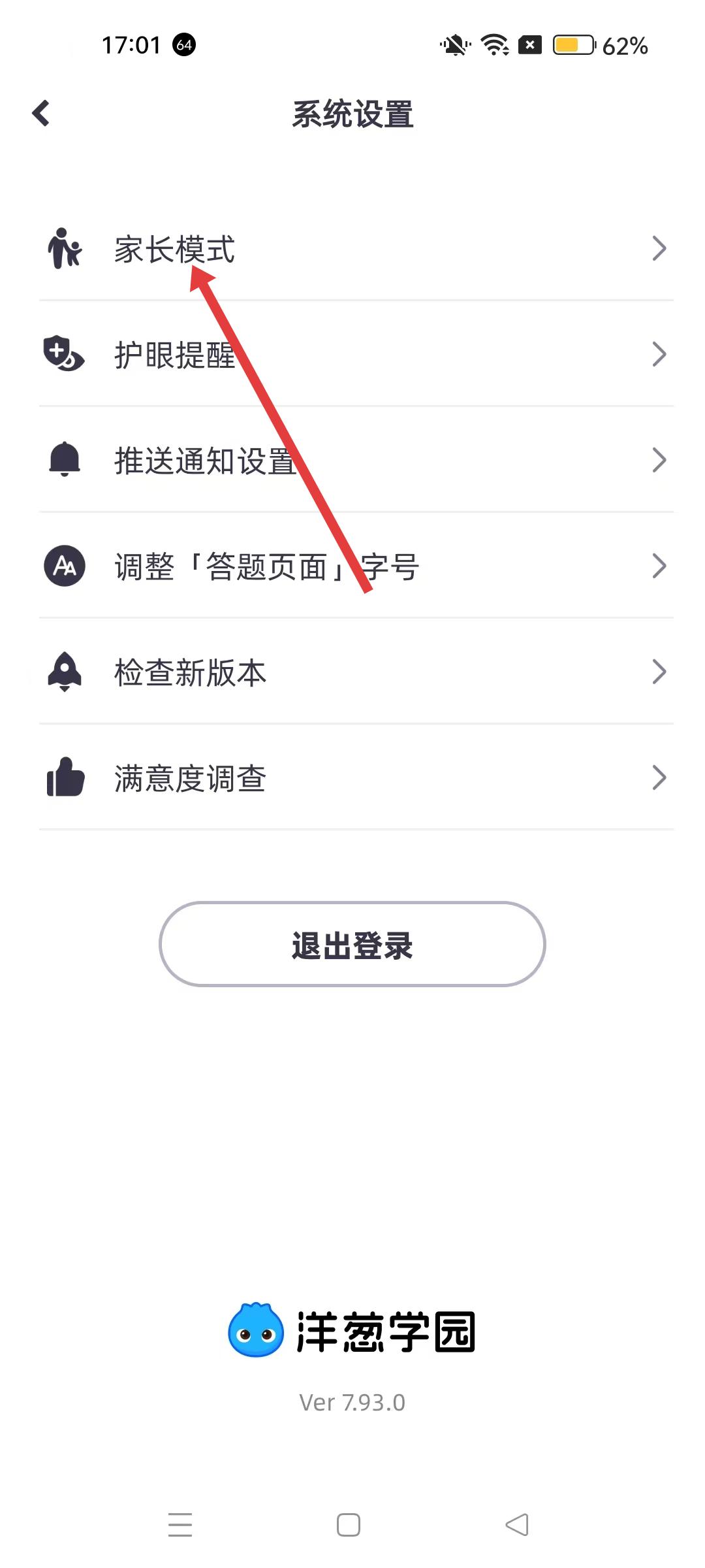 3、系統設置頁面,找到家長模式選項,點擊進入家長模式介紹頁面,了解家長模式的相關信息。
