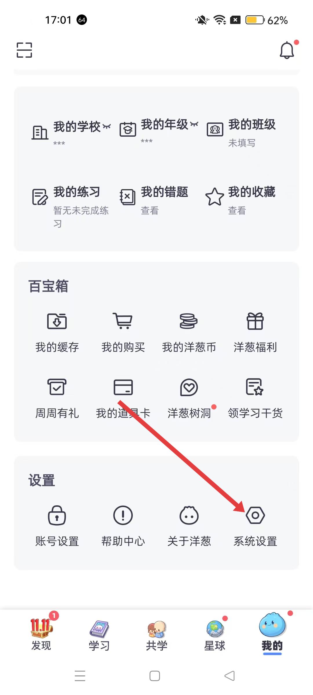 2、進入個人界面后,找到系統設置選項,點擊進入系統設置頁面,查看各類設置選項。