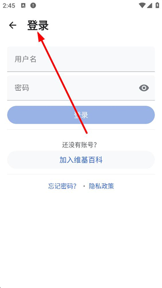 4、已有賬號可直接登錄頁面輸入用戶名和密碼,點擊登錄即可進入賬號,未注冊則可通過加入維基百科入口創建賬號。