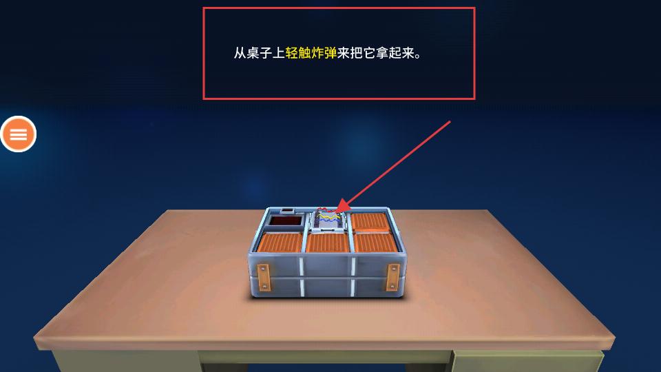 2、根據提示輕觸桌子上的炸彈,將炸彈拿起來,完成拿取炸彈的基礎操作,為后續剪斷電線等拆彈動作做好準備。