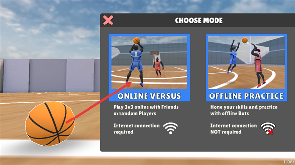 1、點擊PLAY,可選擇在線對戰或離線練習模式,選好后進入籃球對決場景,開啟籃球競技。