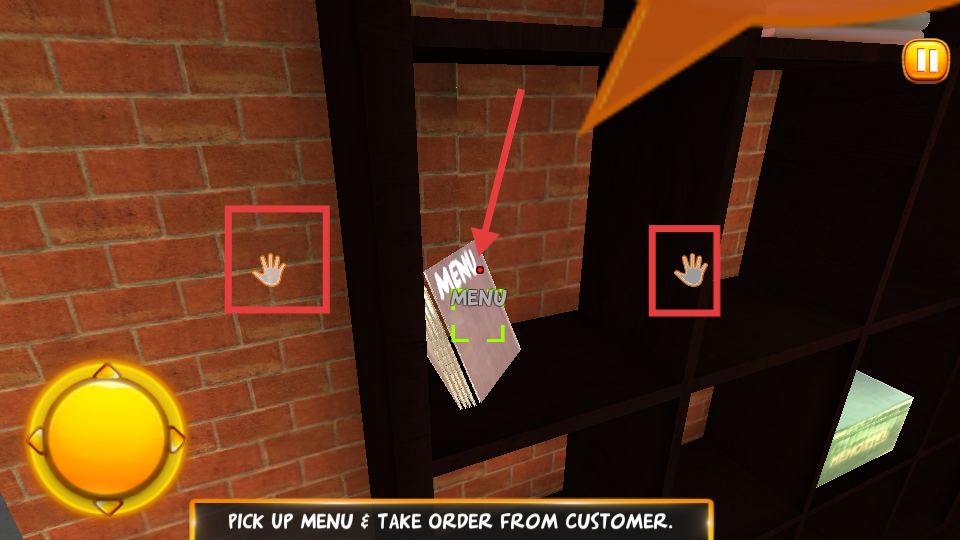 4、當需要菜單時候,就需要找到放置菜單的架子,按照提示操作手掌按鈕,從架子上拾取菜單,以便后續為顧客點餐。