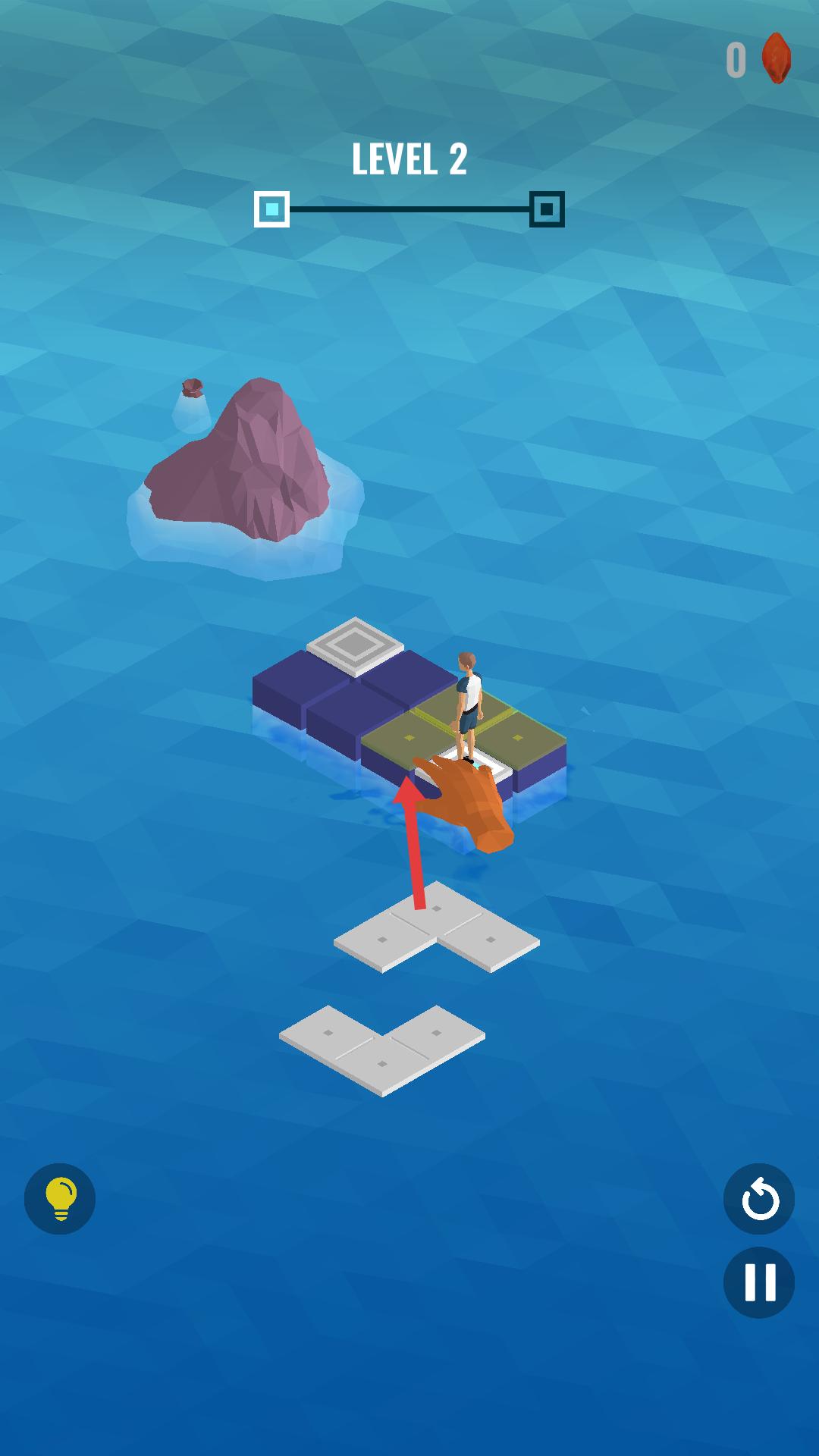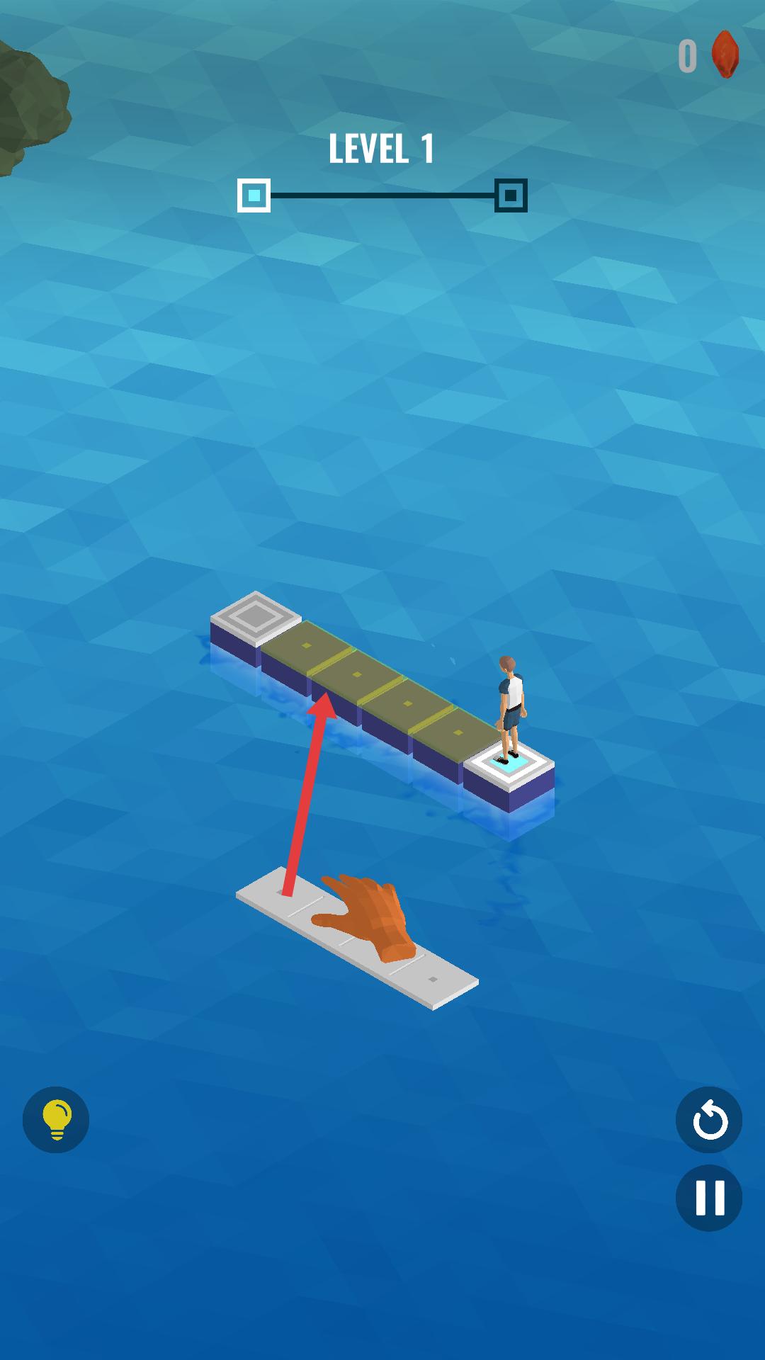 2、進入第一關后按照提示,通過滑動等操作,讓角色沿著水上的路徑移動,朝著目標位置前進。