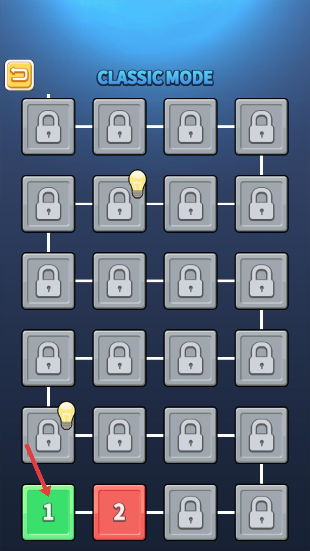 2、進入經典模式初始只有綠色標1的關卡可玩,點擊該關卡,就能開啟經典模式的第一關,開始方塊拼圖挑戰。