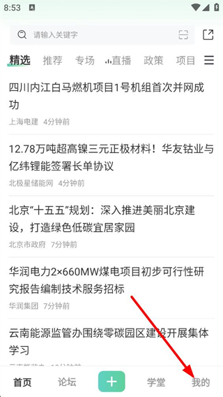 1、進入應用首頁可瀏覽精選資訊,包含項目動態政策規劃等內容,點擊底部我的按鈕,可進入個人相關功能界面。