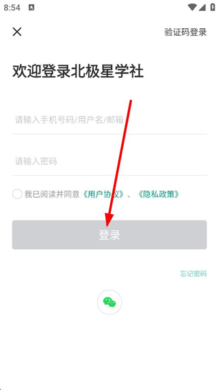 4、驗證碼登錄界面,填寫手機號碼用戶名或郵箱及密碼,勾選同意協議后,點擊登錄按鈕即可完成賬號登錄操作。
