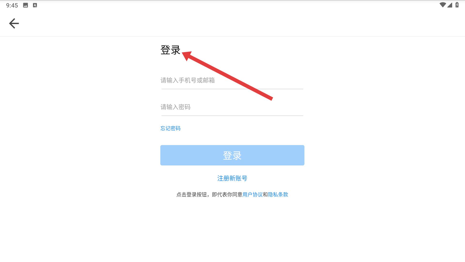 2、登錄界面輸入手機號或郵箱、密碼后,點擊登錄按鈕可完成賬號登錄操作。